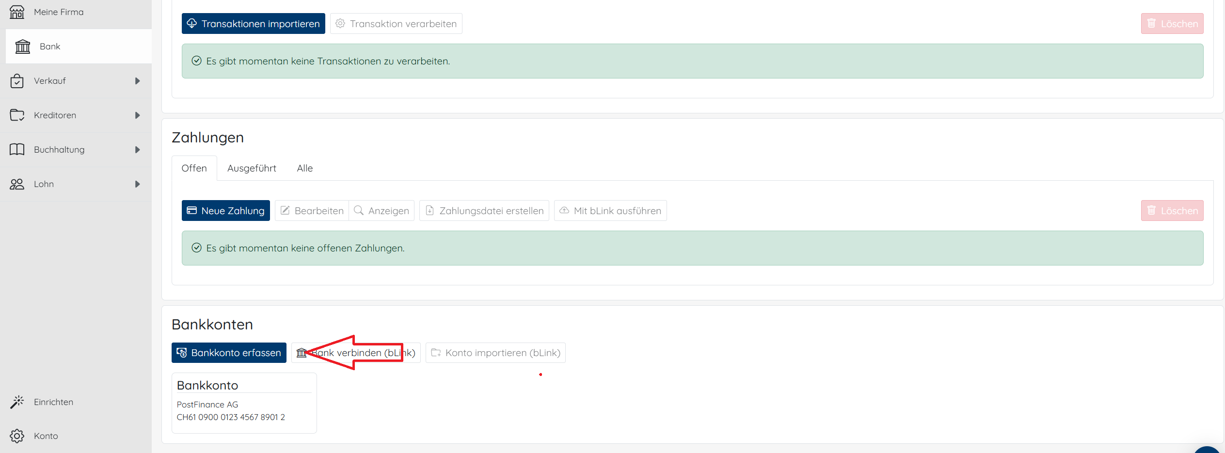 Beachten Sie, dass Ihr QR-IBAN Konto separat erfasst werden muss. Sie können dieses mit der gleichen Fibu-Kontonummer verknüpfen, wie Ihr normales IBAN-Konto.