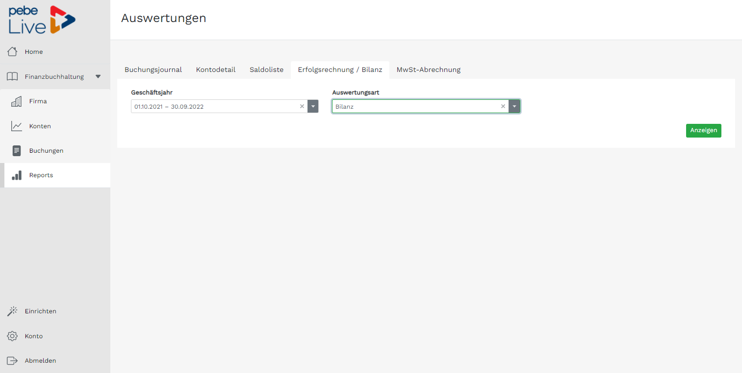 < Alle Themen Haupt Buchhaltung Reports Fibu Bilanz / Erfolgsrechnung Drucken Bilanz / Erfolgsrechnung Aktualisiert9. Februar 2022Wählen Sie, welches das aktuelle Geschäftsjahr auf Ihrer Auswertung sein soll und ob Sie die Bilanz oder die Erfolgsrechnung drucken möchten.Die Auswertung geschieht anhand der Kontozuteilungen im Kontoplan.