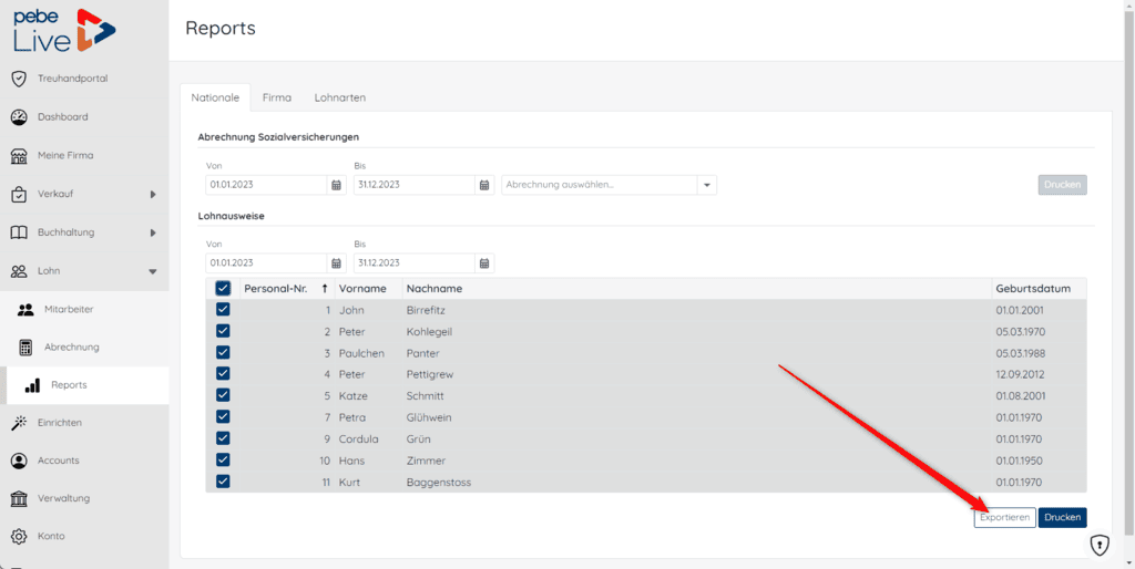 - Exportieren Sie Ihre Lohnausweise in pebe Live